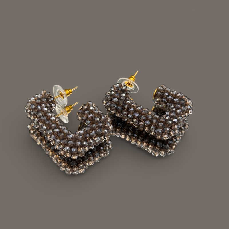 Mooie handgemaakte vermeil oorbellen (24k over sterling zilver) met grijs/taupe color glassberry's. De totale lengte is 3,6 cm.